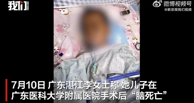 7月10日,广东湛江李女士称,3岁的儿子在广东医科大学附属医院做扁桃体手术后“脑死亡”。李女士的妹妹称,孩子做的是肥大扁桃体和腺样体切除手术,术后至今一直昏迷。手术记录显示手术顺利,出血约5毫升,术后孩子送PICU复苏。医院工作人员回复记者称,术前已告知家属手术风险,建议家属做医疗鉴定查清原因。记者从霞山区卫健局获悉,已收到家属投诉并受理。湛江市医调委称,如家属提出申请将介入处理。